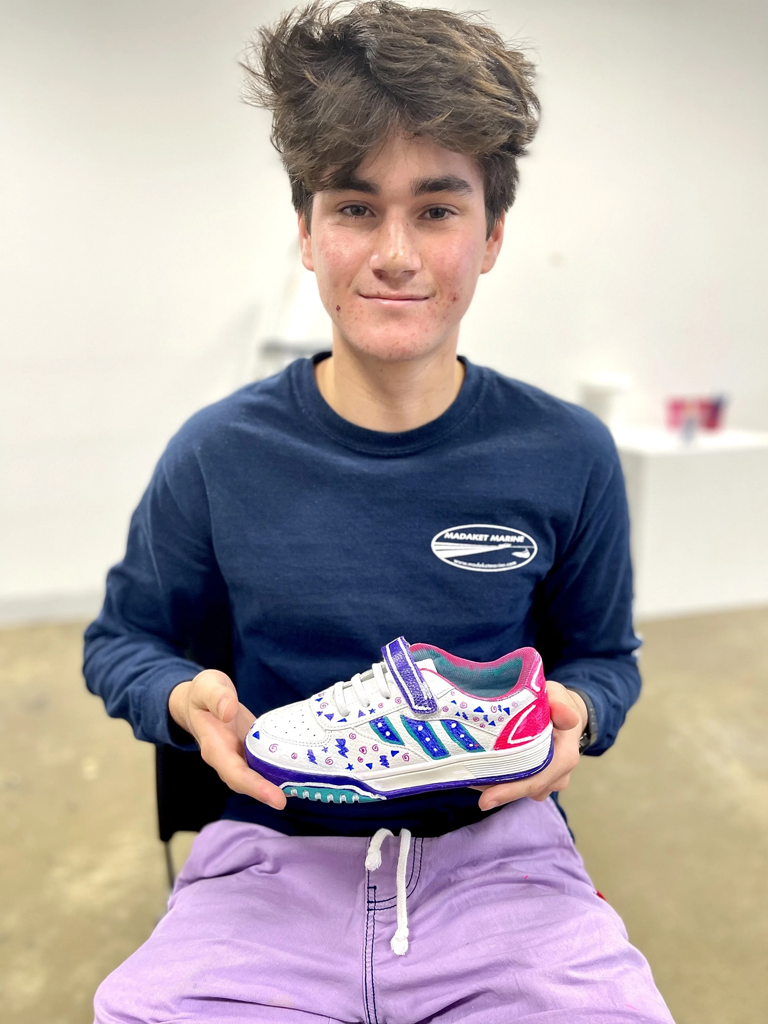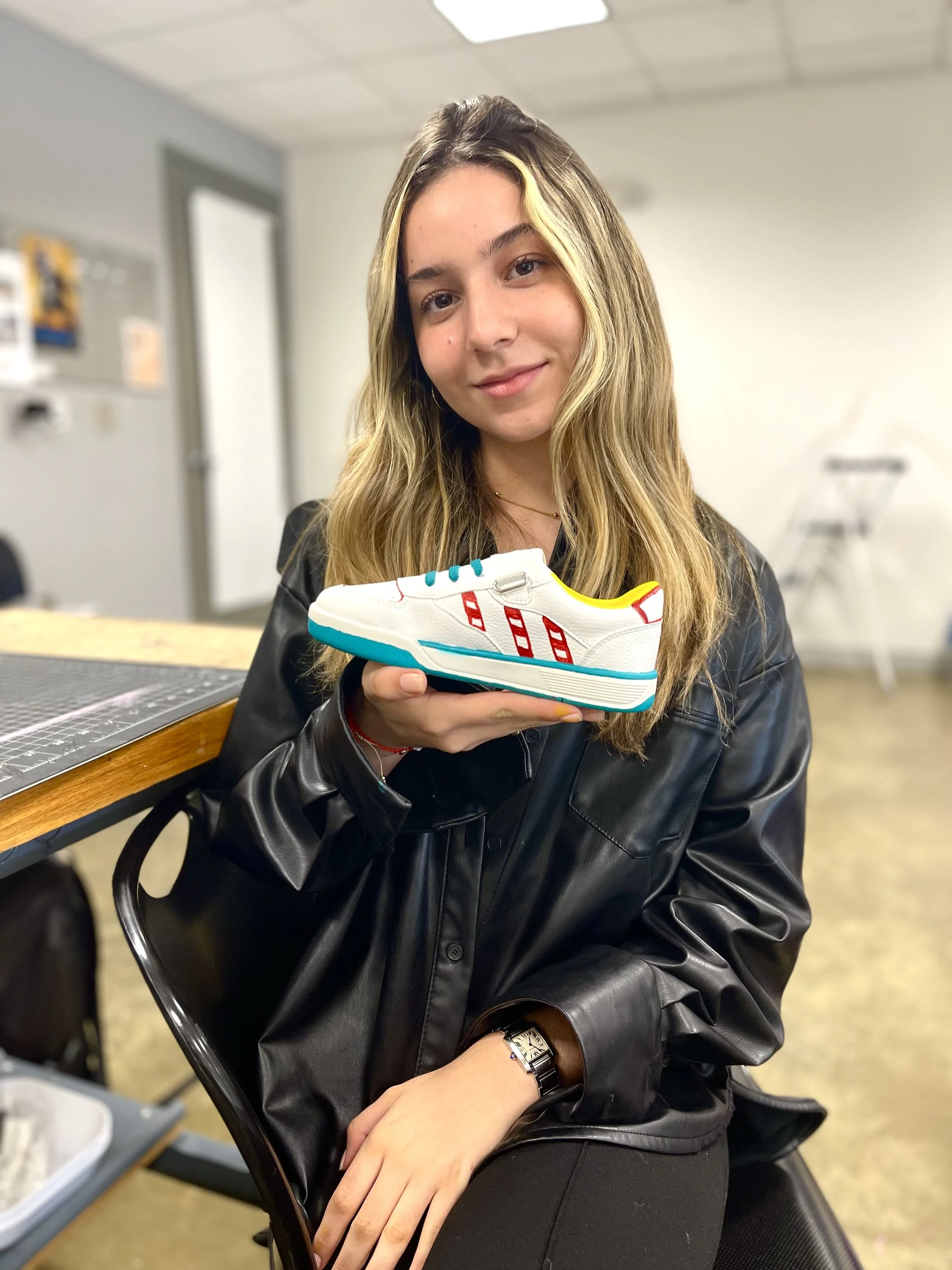 The students ideated using CAD print outs. The CAD templates changed from a Stan Smith to a Forum to resemble the panels on their shoe more accurately. Students then selected their most favorable design and began to customize their shoes.